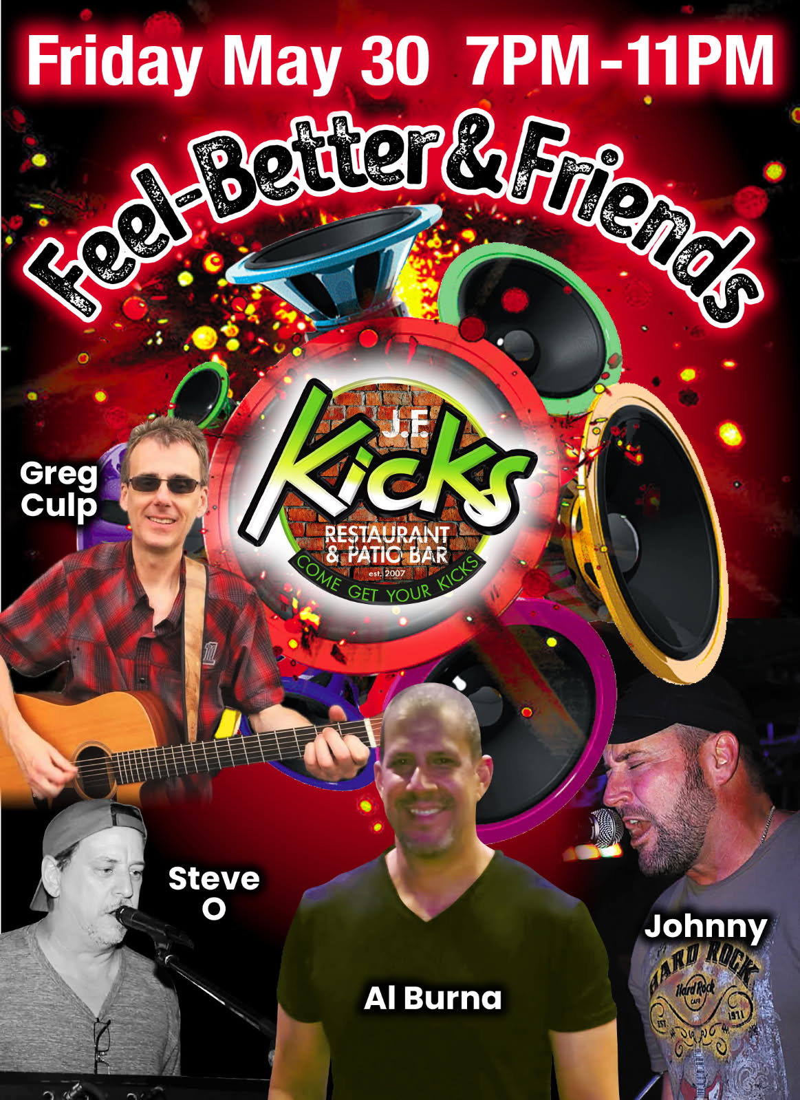 Feel-Better & Friends returns to JF Kicks – Johnny Spieldenner, SteveO, Greg Culp, and Al Burna rock out on the Kicks Patio!