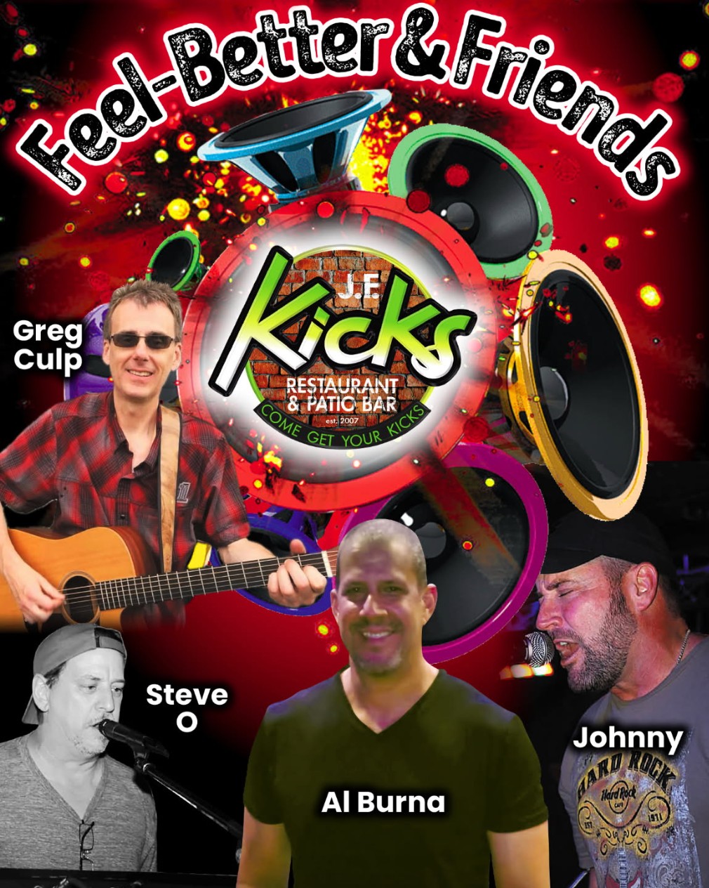 Feel-Better & Friends is here – Johnny Spieldenner, SteveO, Greg Culp, and Al Burna rock out on the Kicks Patio!
