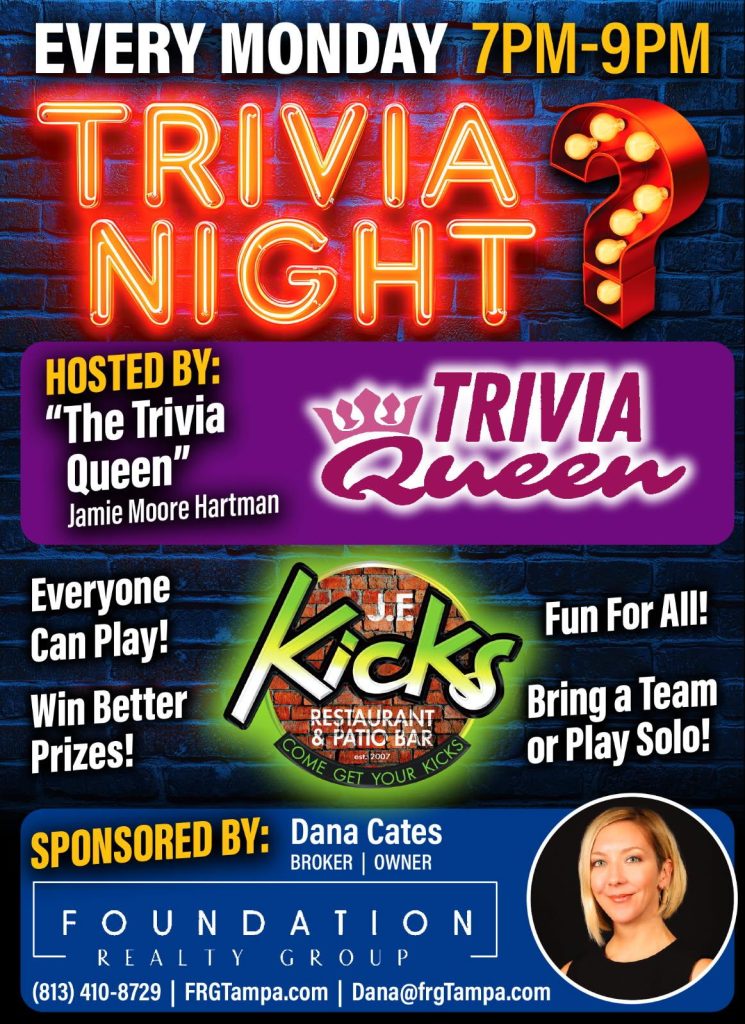 Trivia at JF Kicks is on Monday nights from 7pm-9pm, what a great trivia group!