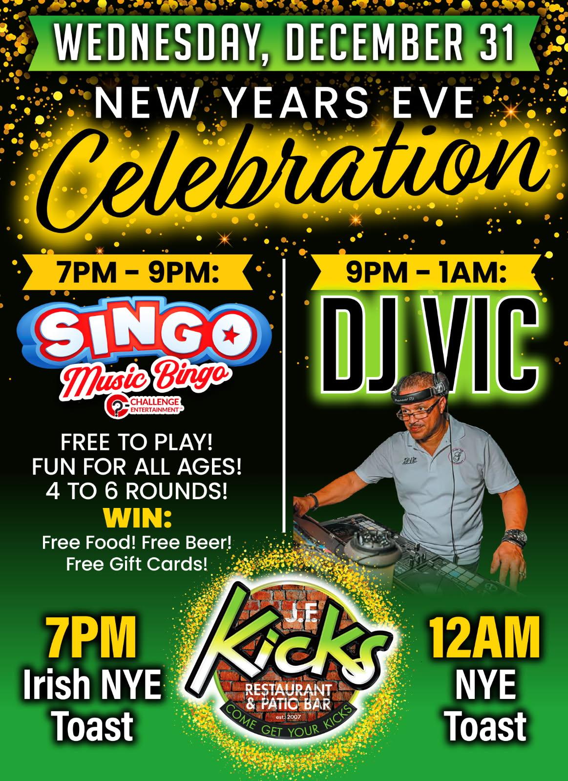 Say goodbye to 2025 and hello to 2026 with DJ Vic and all your friends at JF Kicks! Irish New Year Toast: 7pm Singo Music Bingo: 7-9pm DJ Vic: 9pm-1am […]