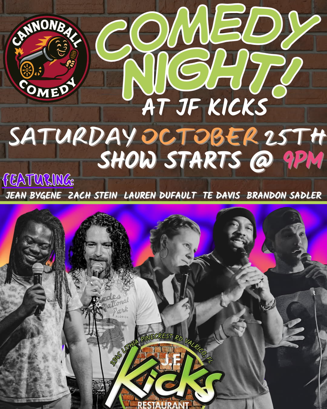 Get ready to laugh! Comedy Night by Cannonball Comedy brings Florida’s funniest comics for a night you won't want to miss!