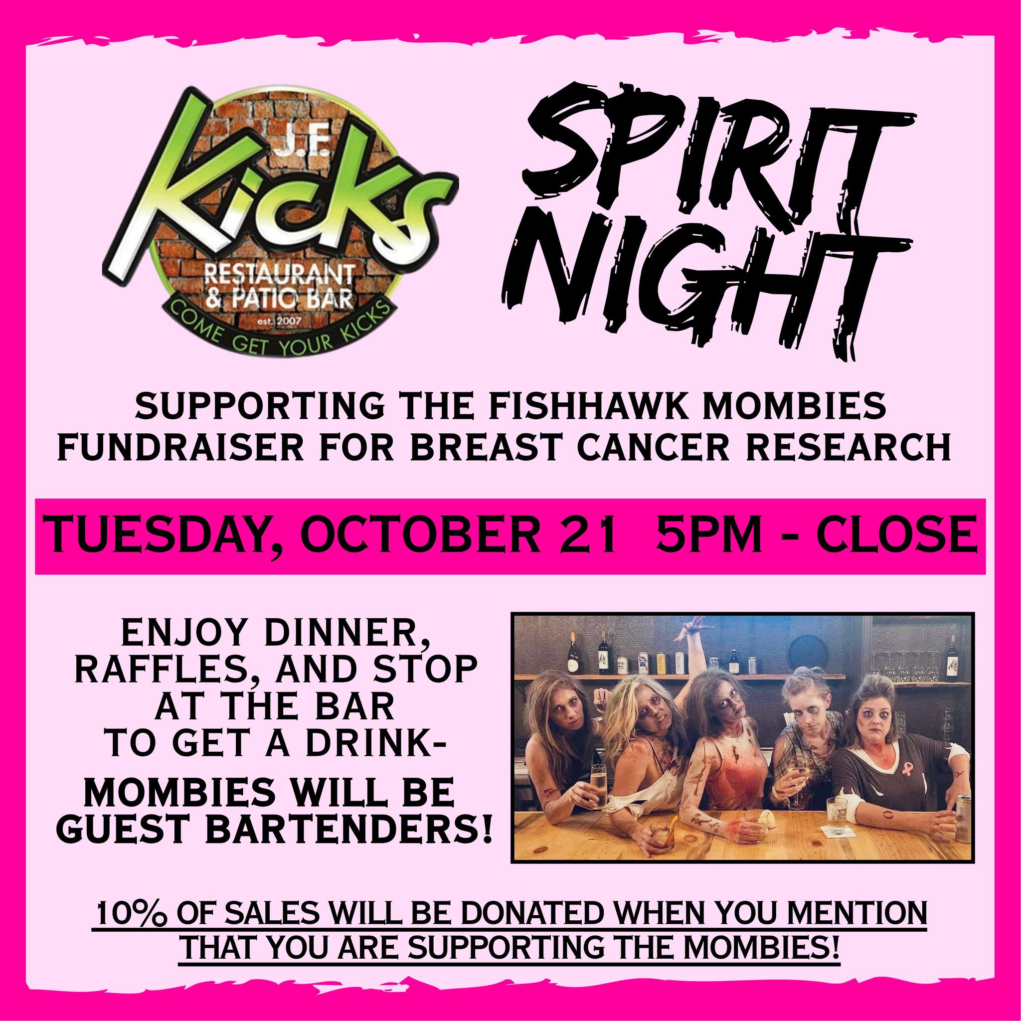 It's Spirit Night for the Fishhawk Mombies - donating 10% of sales of participating customers back to The Cancer Couch Foundation which supports breast cancer research. Some of the Zombie moms will be guest bartenders!