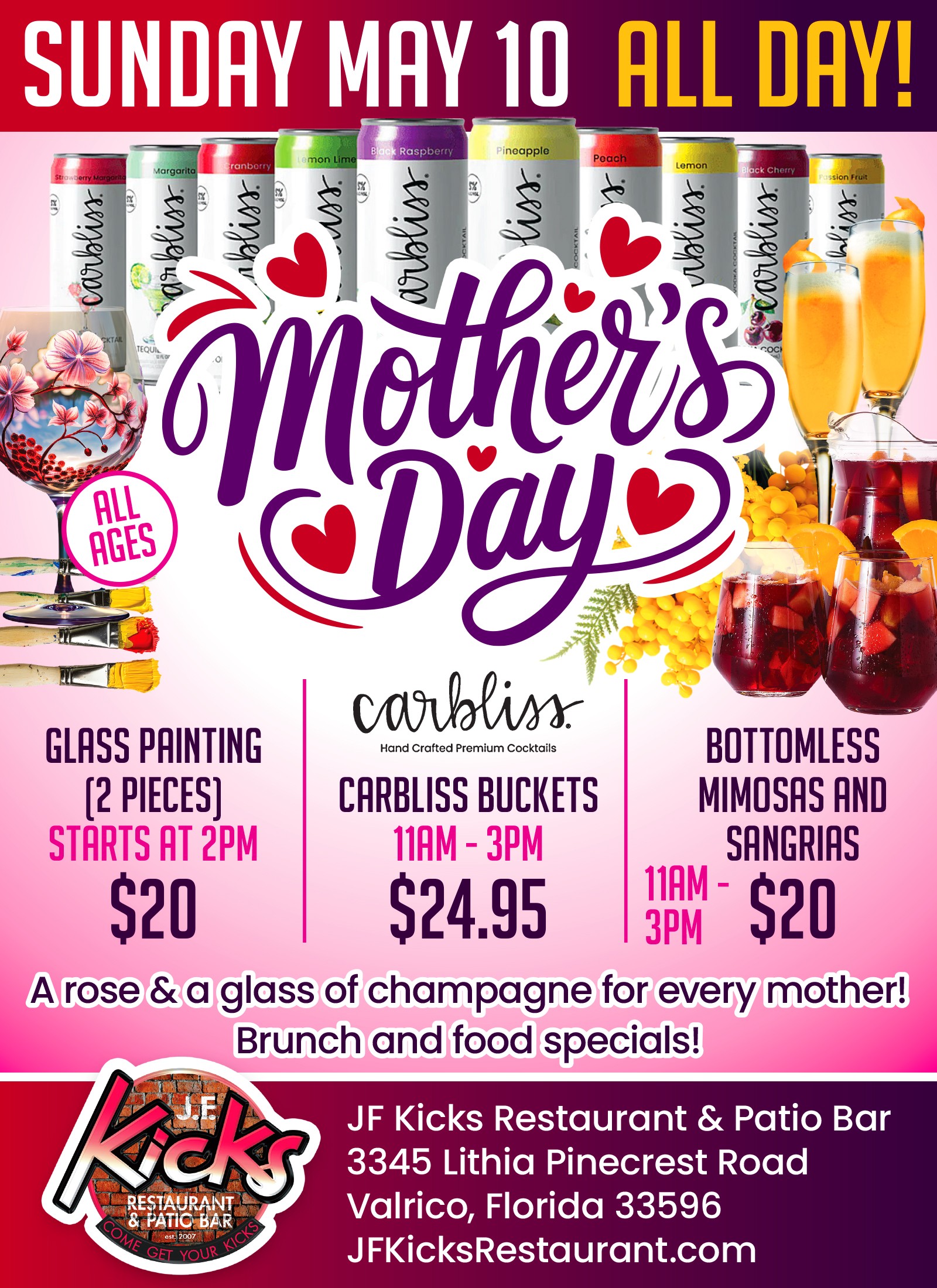 Celebrate Mom with a rose and glass of champagne for every mother. Sunday Brunch will be served 11am-3pm, and we will have glass painting at 2pm for $20. Plus Carbliss […]