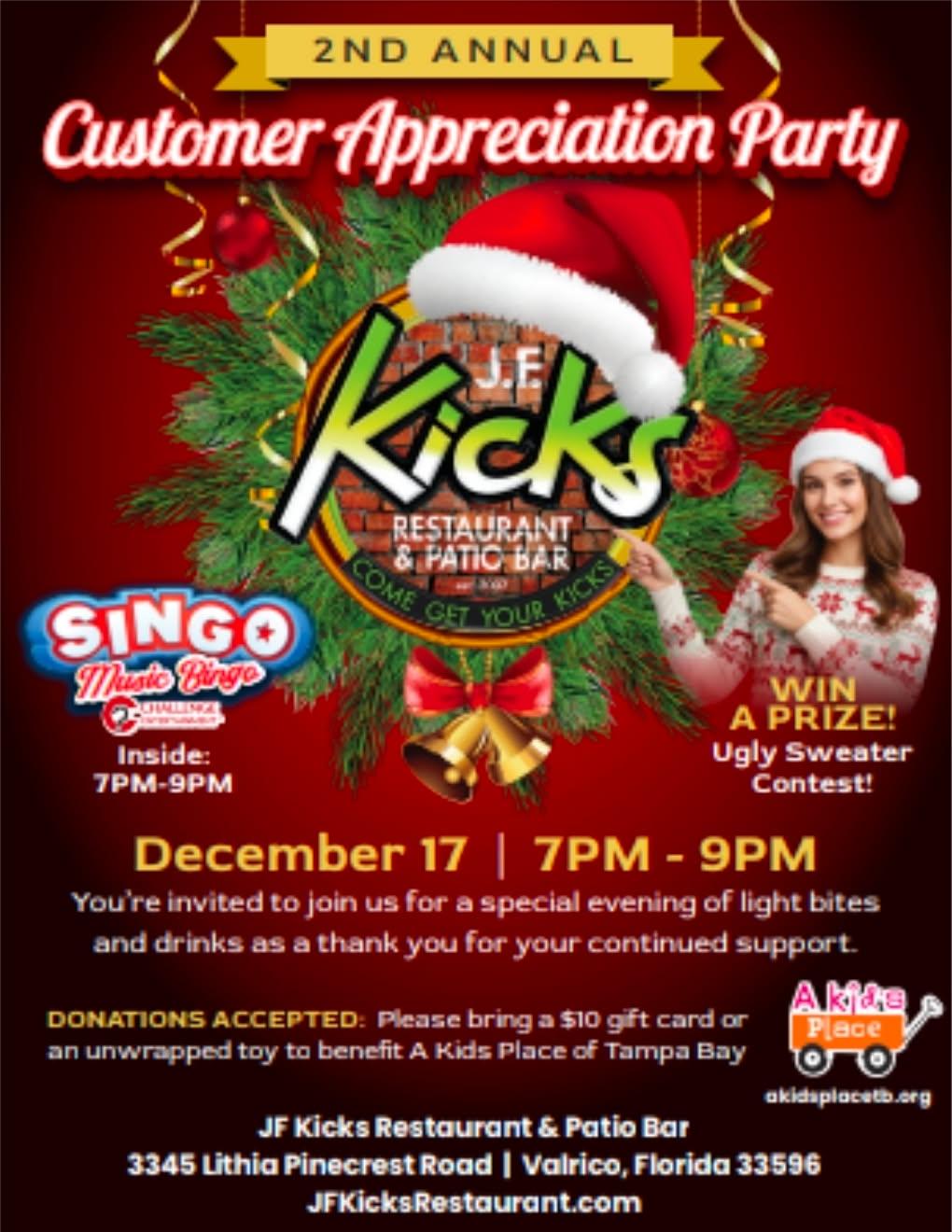 Come watch Thursday Night Football at JF Kicks. Check out our Thursday Night Football specials: $5 Jack Daniels $4 Shot Specials $18.95 Domestic Buckets $24.95 Import Buckets $28.95 Seltzer Buckets […]