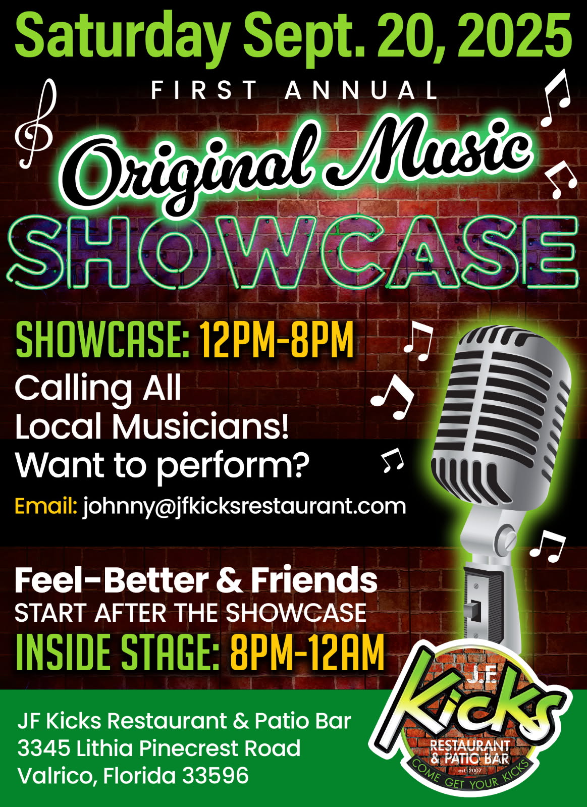 Are you a singer songwriter with original music that you're ready to share? Contact johnny@jfkicksrestaurant.com to get into the line-up for the Kicks First Annual Original Music Showcase! Tired of playing cover songs and want to get real life reactions to the music that you have created? This event is your outlet! Original Music Showcase: […]